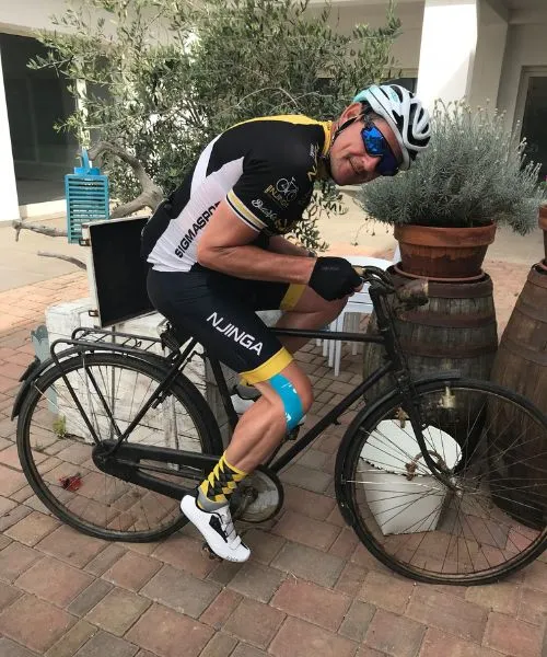 “I started at 108kg, barely hanging on at the back of the peloton. With Njinga’s coaching and community, I’ve lost over 31kg, added power and qualified for the UCI Gran Fondo World Championships three times.”